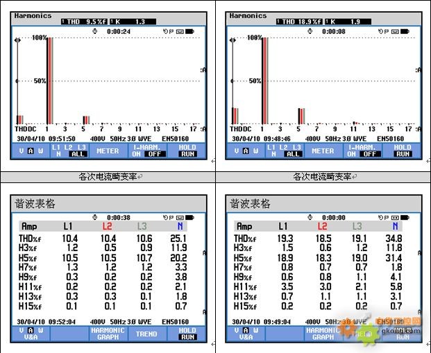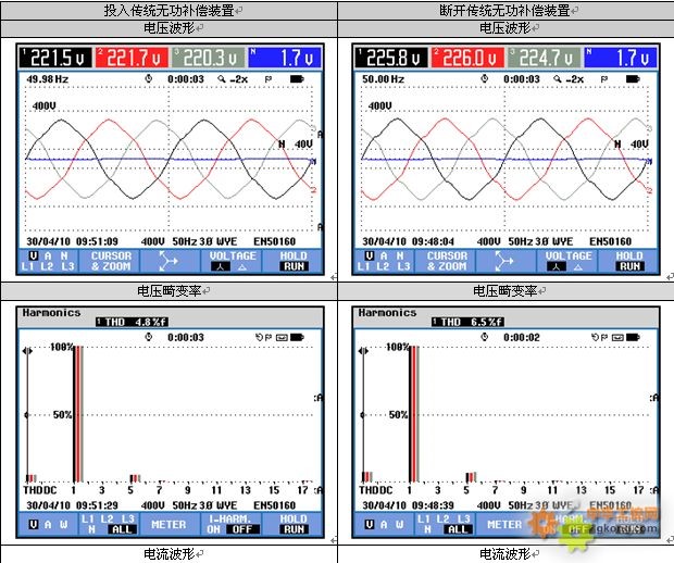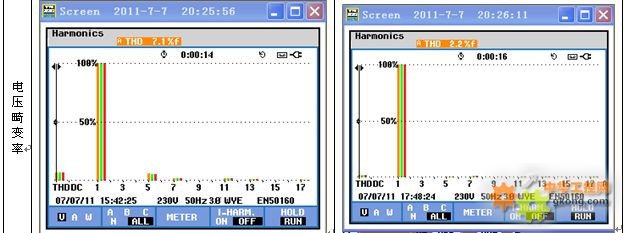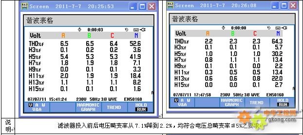 通過測試浙江某大型船舶制造公司的一個船塢配電室傳統(tǒng)無功補償投入前后數(shù)據(jù)可以清晰看到傳統(tǒng)無功補償對諧波嚴重放大的情況。