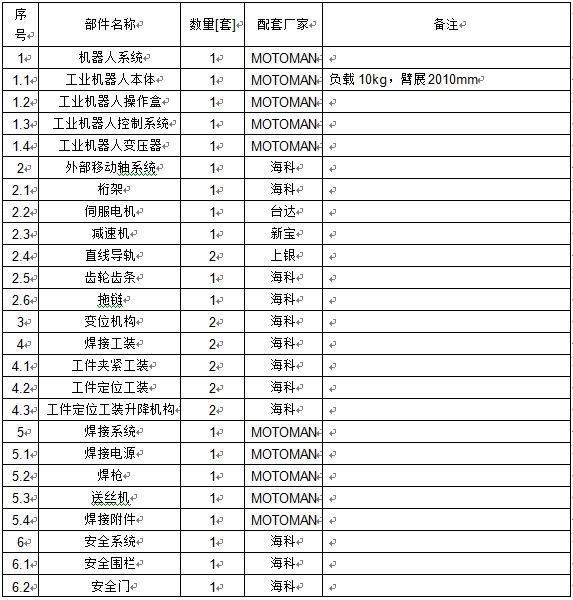賣方為買方提供工業(yè)機(jī)器人自動(dòng)弧焊系統(tǒng)壹套及安裝與調(diào)試服務(wù)事宜。