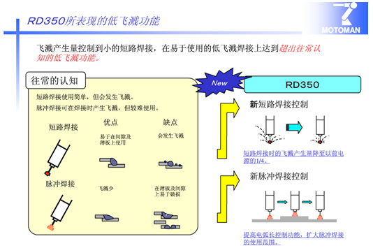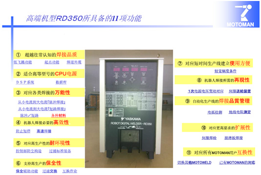 采用超低飛濺全數(shù)字化機(jī)器人專用焊接 電源RD-350。此電源具有如下特點(diǎn):