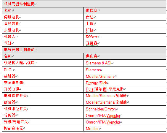 七、 主要元器件制造商