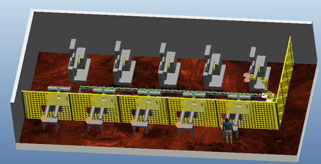 此系統(tǒng)由上卸料機器人、上卸料機構(gòu)、自定心裝置構(gòu)成。用于實現(xiàn)成組毛坯的分揀、成品成組疊放、成組毛坯及成品的輸送、單件毛坯及成品的搬運及取放件機器人抓取工件之前對工件的自動定心。