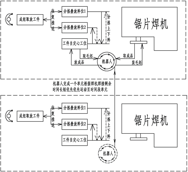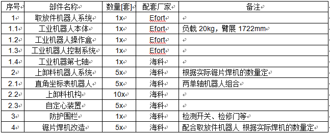 固定單元:鋸片焊機 + 上卸料機器人系統(tǒng) 數(shù)量五套(由實際鋸片焊機數(shù)量決定)