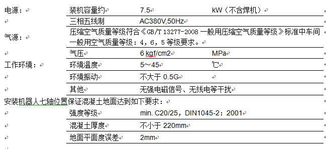 ? 對機器人系統(tǒng)的安裝調(diào)試提供必要的水、電、壓縮空氣、叉車行車等的使用支持。
