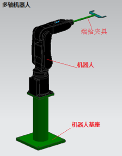 多軸機(jī)器人的顯著特點(diǎn)是柔性極高、適用范圍廣。本方案涉及零件重量~500克,考慮夾具的自重及加長(zhǎng)臂等因素,初步選定5KG級(jí)加長(zhǎng)臂機(jī)器人。同時(shí)為了讓機(jī)器人工作在理想的高度位置需要給其加固定座。