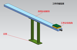 該平臺(tái)的作用是將上工序放料位置的工件快速搬運(yùn)到本工序的取料位置。平臺(tái)由工件定位裝置、支架和高速直線運(yùn)動(dòng)模塊等幾部分構(gòu)成。該直線模塊的運(yùn)動(dòng)速度超過(guò)2M/S,實(shí)現(xiàn)工件的快速移動(dòng)。