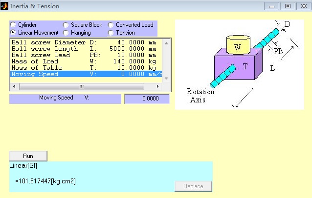 負載M=150Kg 行程S=4000mm 絲桿長度L=5000mm 絲桿型號Tr4010 T形絲桿
