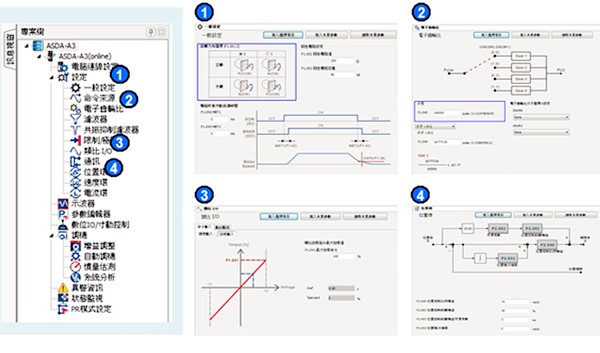 引導(dǎo)式與對話式的自動調(diào)機(jī)功能,只要循序簡單設(shè)定即完成伺服增益調(diào)整