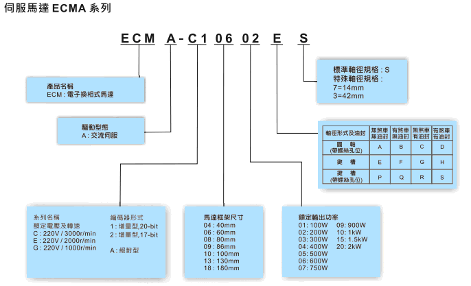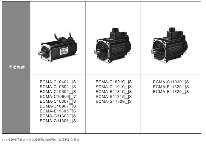 包含三種尺寸, 100W到3kW (AB機(jī)種到2kW)