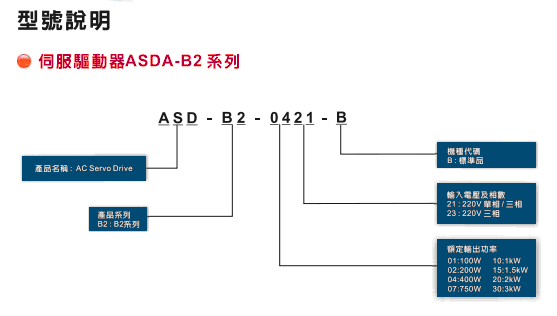 ASDA-B2系列功率數(shù)由0.1kW到3kW,其優(yōu)越的性能特點(diǎn)強(qiáng)調(diào)於「內(nèi)建泛用機(jī)能應(yīng)用,減少機(jī)電整合之變異成本」。使用臺(tái)達(dá)ASDA-B2系列產(chǎn)品時(shí),除了可便利完成配線和操作設(shè)定,在與他牌產(chǎn)品更換過程中,馬達(dá)尺寸的對(duì)應(yīng)性和產(chǎn)品特性的匹配,皆在水準(zhǔn)之上。ASDA-B2系列不僅滿足市場對(duì)於泛用產(chǎn)機(jī)的國產(chǎn)化設(shè)備需求,並且針對(duì)專用機(jī)提供多樣化的操作選擇。