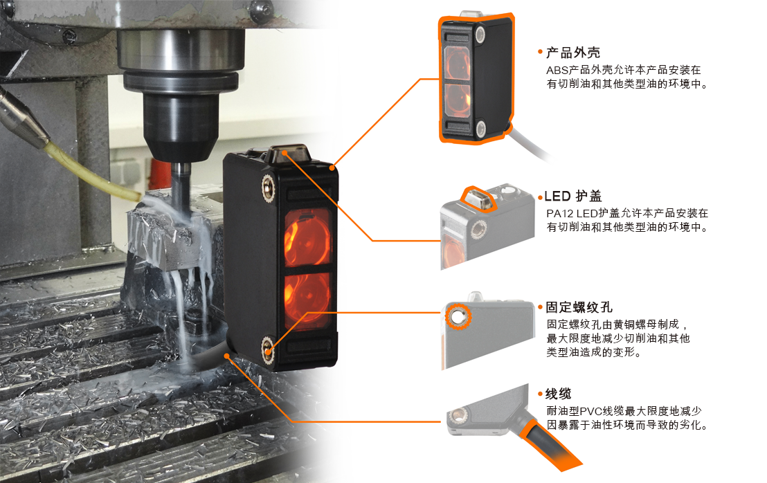 防油型光電傳感器 (針對(duì)汽車和機(jī)床行業(yè)進(jìn)行了優(yōu)化)